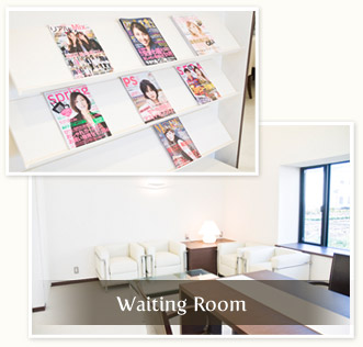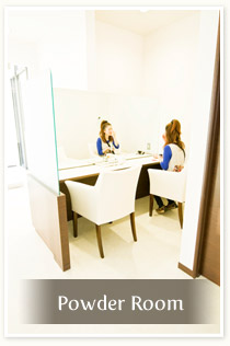 | ホテルのラウンジの様なウェイティングルーム | 専門店限定のヘアケア商品も充実 | 広いパウダールームもしっかり完備 |